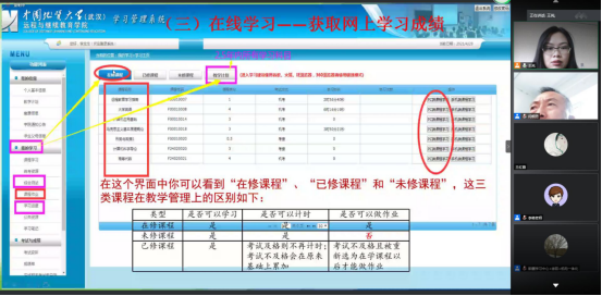 最后,王岚老师从学前准备、学习流程、学习六大环节、考试考核、本科生统考、专科生实习和本科生毕业论文、本科生学士学位、毕业、学习支持共9方面进行2.5年学制教学计划的导学培训,讲解学习要点、分享学习历届优秀学生学习经验。助推新生日常学习定目标计划,树立学习信心。